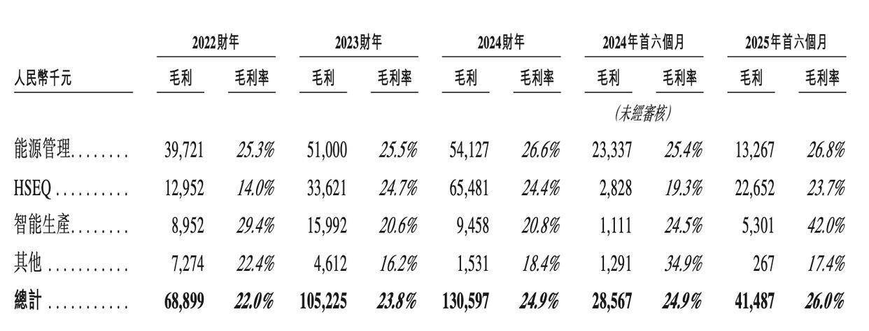 于2022财年、2023财年、2024财年以及2025年首六个月,德风科技毛利率分别为22%、23.8%、24.9%、26%。