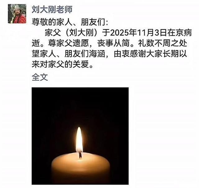 2025年11月3日,刘大刚因病去世。 等大家得到消息,已经过了72小时,连他的追悼会都结束了。