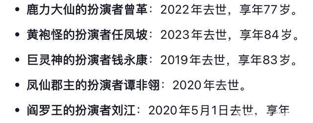 据不完全统计,《西游记》的参演人员,已去世40多位。 大家最熟悉的,有第一任沙僧的扮演者闫怀礼,车迟国王后的扮演者赵丽蓉。 还有阎王刘江、如来朱龙广。 随着他们的离去,记忆中的童年,似乎又遥远了不少。 但网上有句话,是这样说的。 这些演神仙的人,普遍都活到了70~90岁。 他们或许,是真的回到了天上。