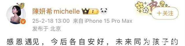 2025年2月份,两人通过个人社交媒体账号同时官宣离婚。 并称以后将是孩子的父母,共同陪着孩子茁壮成长,也希望彼此安好。 此消息一出,希望两人好好过日子的粉丝天都塌了,媒体的推测也变成真的。