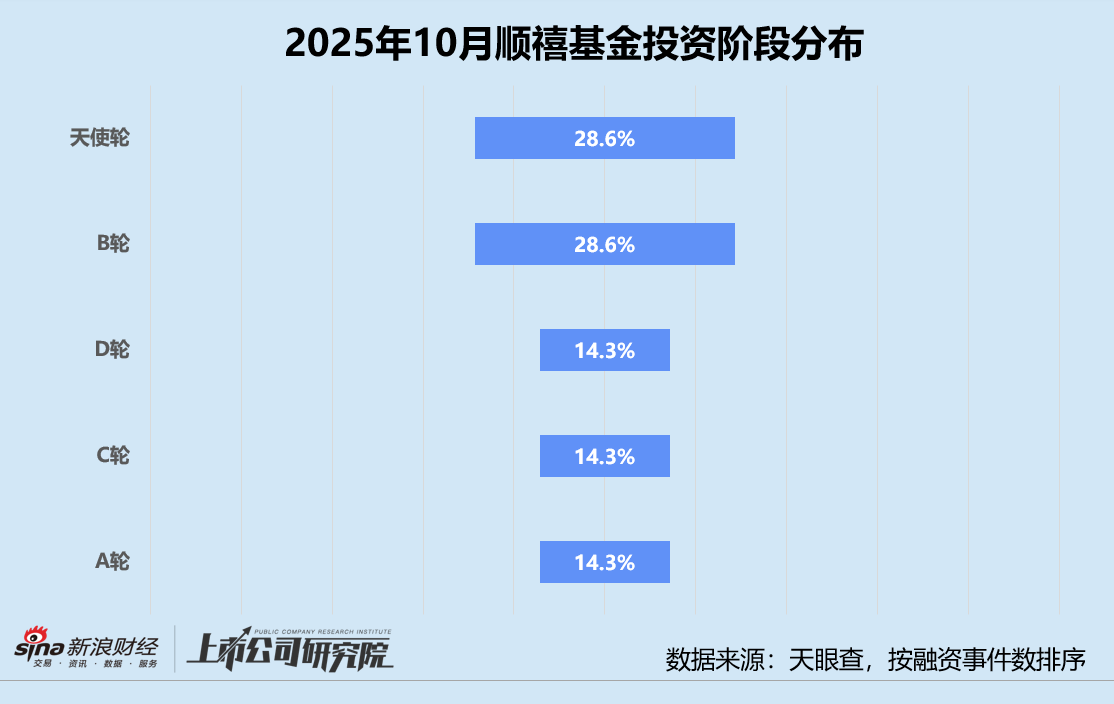 统计区间内,顺禧基金公开披露的股权投资事件共7起,是自2024年12月以来的最高值。往期数据显示,顺禧基金在10月之前每月投资次数维持在1-3次,10月激增至7次,活跃度显著提升。