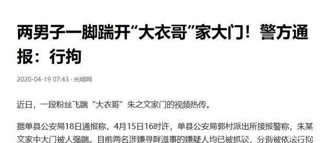 “走红”带来的“代价” 自从走红后“大衣哥”家门口就成了“免费景点”,每天都有拍客堵在门口,举着手机拍他的日常生活。 而这还不是最过分,甚至还有两名自称粉丝的外地男子酒后强行踹开“大衣哥”住宅大门,围观群众无一阻拦,一些人甚至在起哄,等着拍摄这一“劲爆”的时刻。