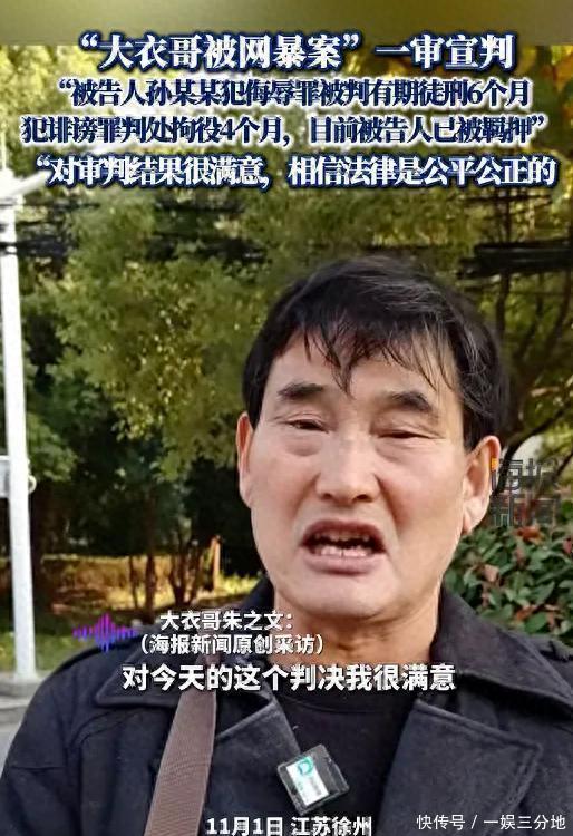 2025年2月18日,朱之文刑事自诉网暴者侮辱诽谤一案,在江苏省徐州经济技术开发区人民法院一审开庭,经过八个多月的等待,“大衣哥”终于等来了判决结果。 据悉,被告人以侮辱罪、诽谤罪,合并执行有期徒刑六个月。不仅如此,朱之文还在采访中表示要起诉另一名网暴者......